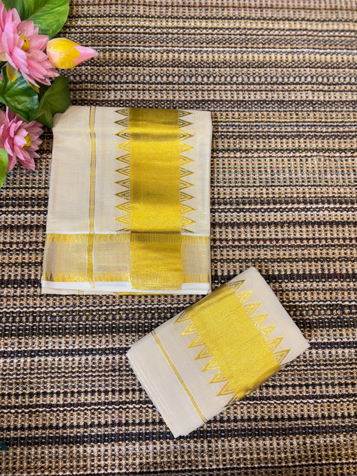 - Tissue set mundu Length: Mundu : 2 Metre Neriyathu : 2.8 Metre, no extra blouse.Authentic Kerala Tissue Set Mund