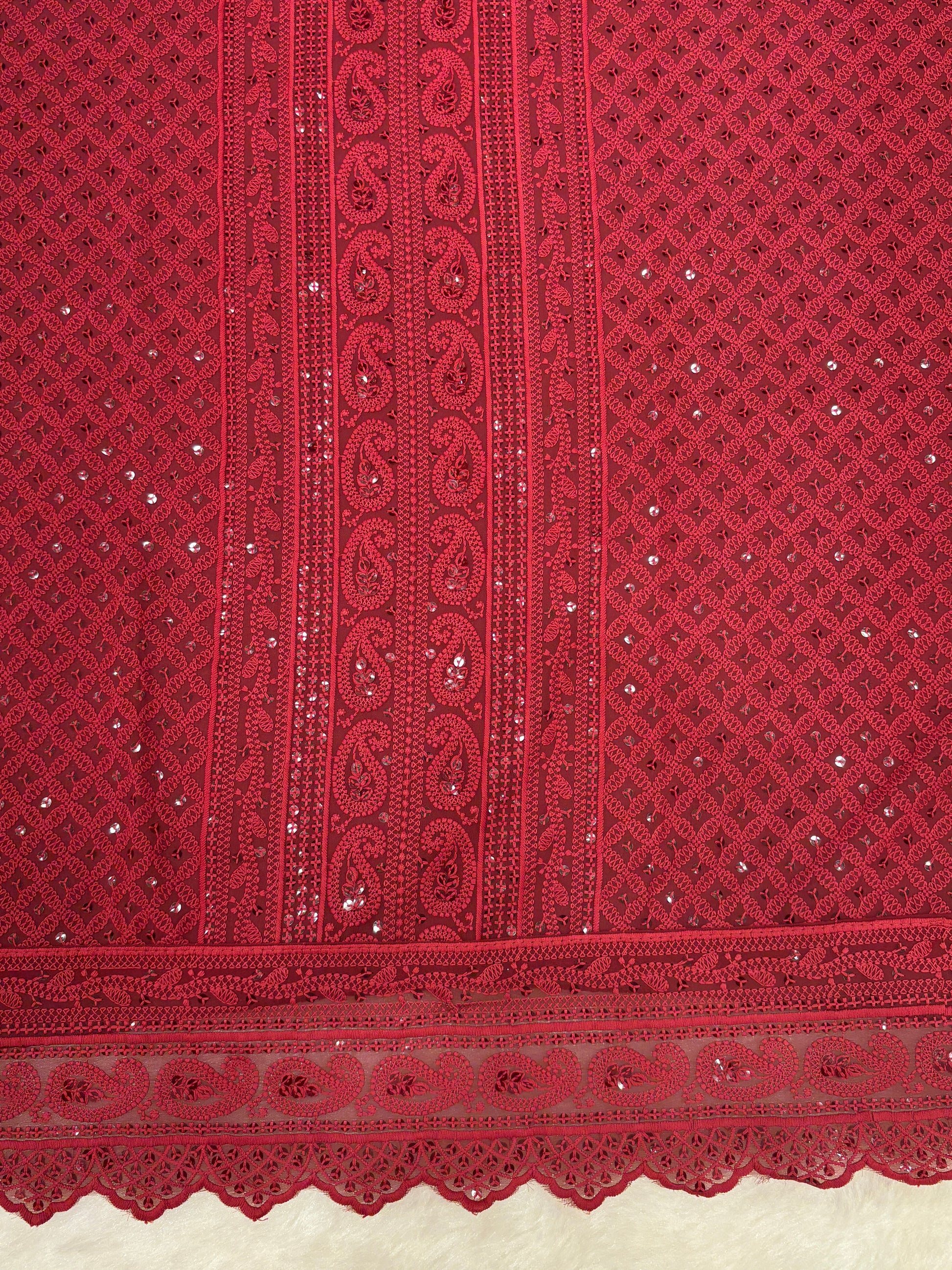 Salwar Material | Lucknowi Chikankari | Dupatta With Mirror Work