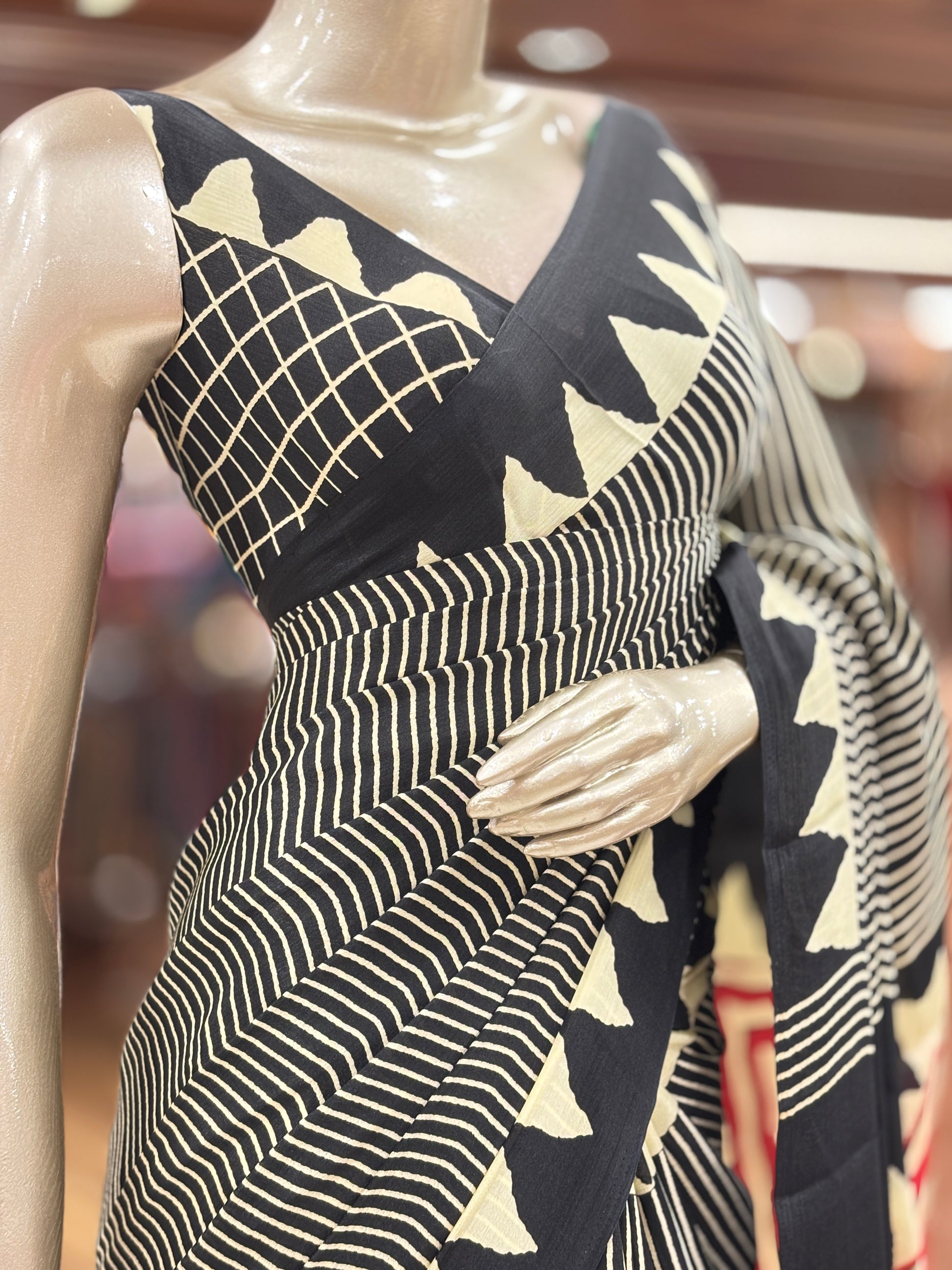 - Print Or Pattern: Striped Printed Saree || Ethnic Striped Blouse