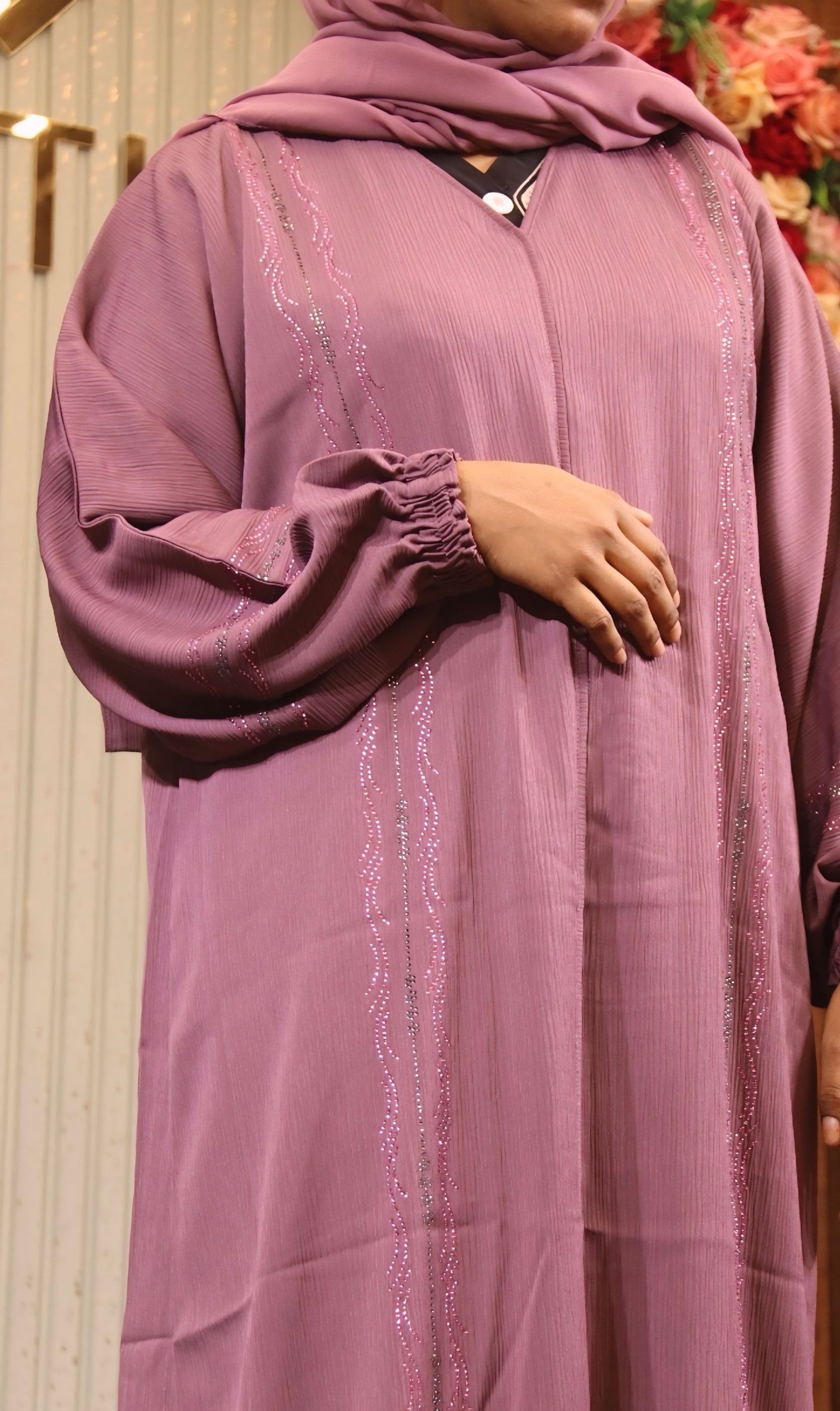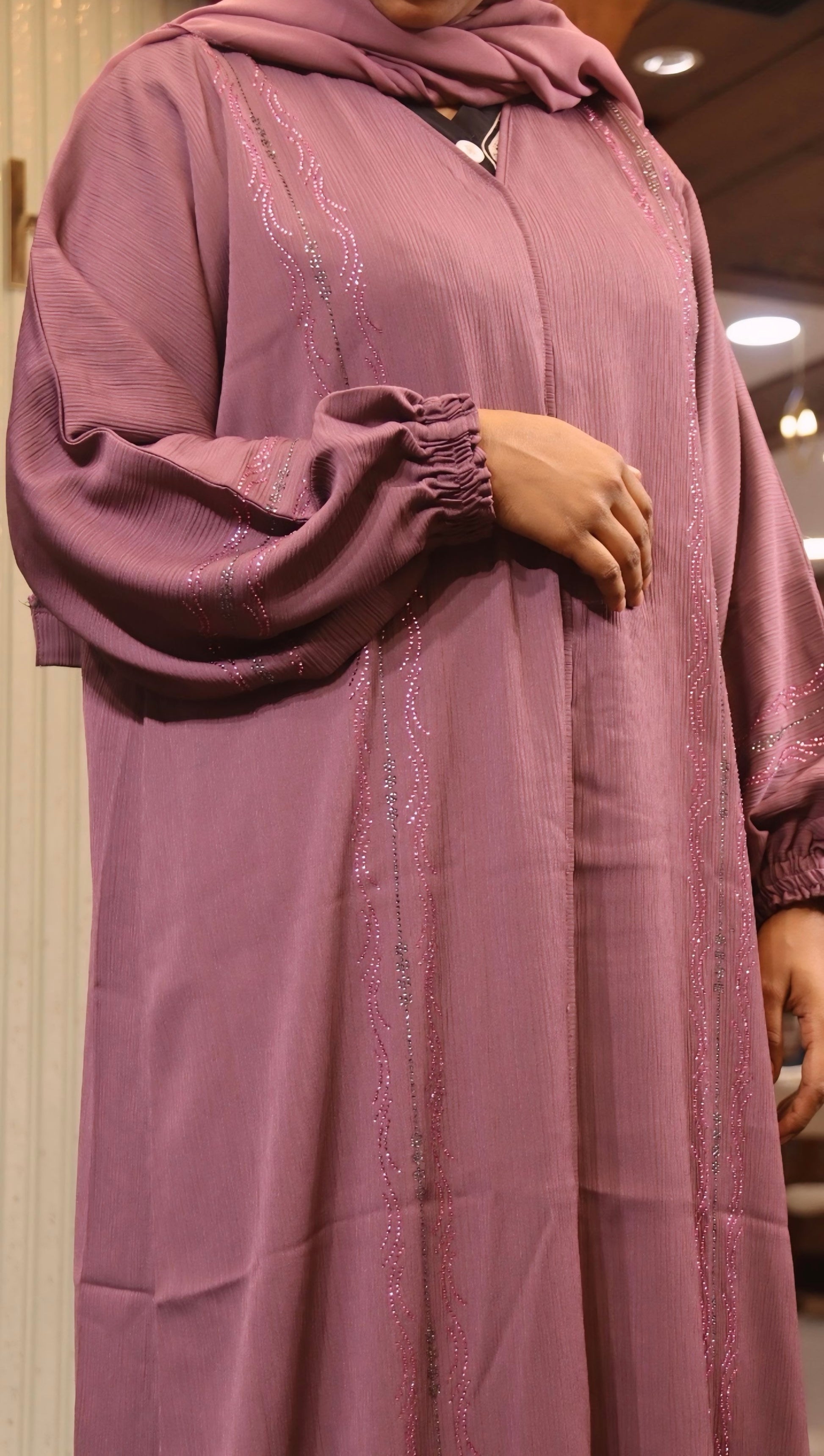 Sleeve: with rib and stone work
